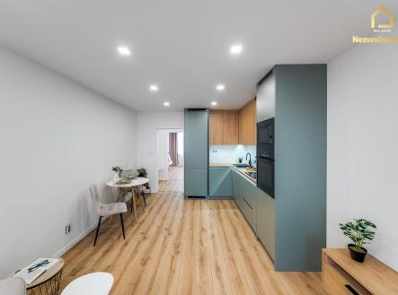 Nemovitost prošla zdařilou celkovou modernizací a je připravena k okamžitému nastěhování. Dominantou interiéru je nová kuchyňská linka v moderní zelené barvě, vybavená kvalitními spotřebiči Bosch – myčka, trouba a indukční varná deska, dále lednice, mikrovlná trouba a odsavač par. V celém bytě jsou položeny plovoucí podlahy, koupelna je vybavena praktickým sprchovým koutem a WC je oddělené. Velkou výhodou je také samostatná komora, která nabízí dostatek prostoru pro pračku, sušičku i další věci.