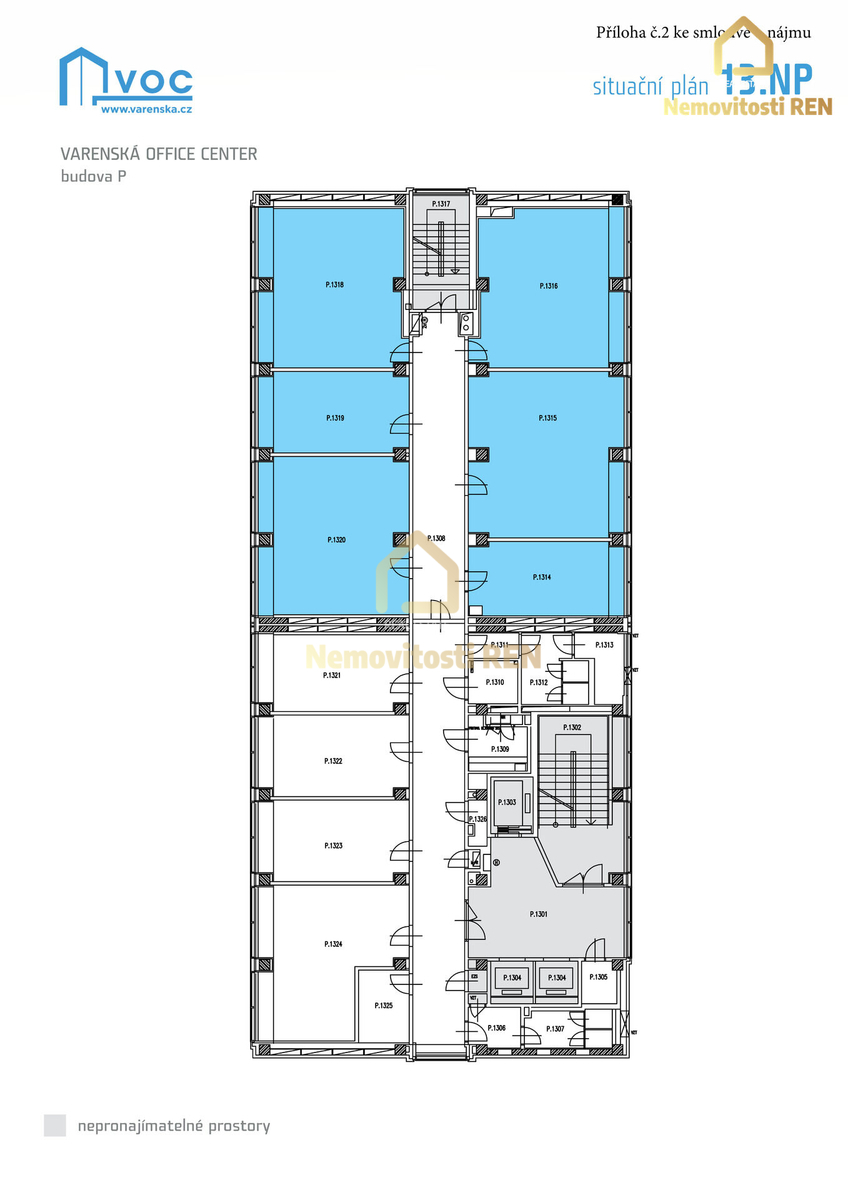 Moderní a atraktivní prostředí nabízí kancelářské prostory o celkové ploše 275 m², které se nacházejí ve 13. patře administrativní budovy.
